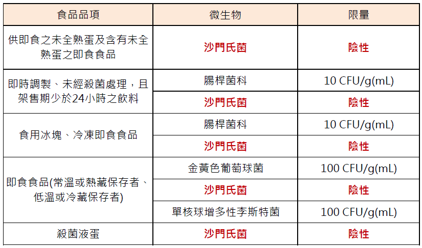 衛生福利部食品藥物管理署《食品微生物衛生標準》